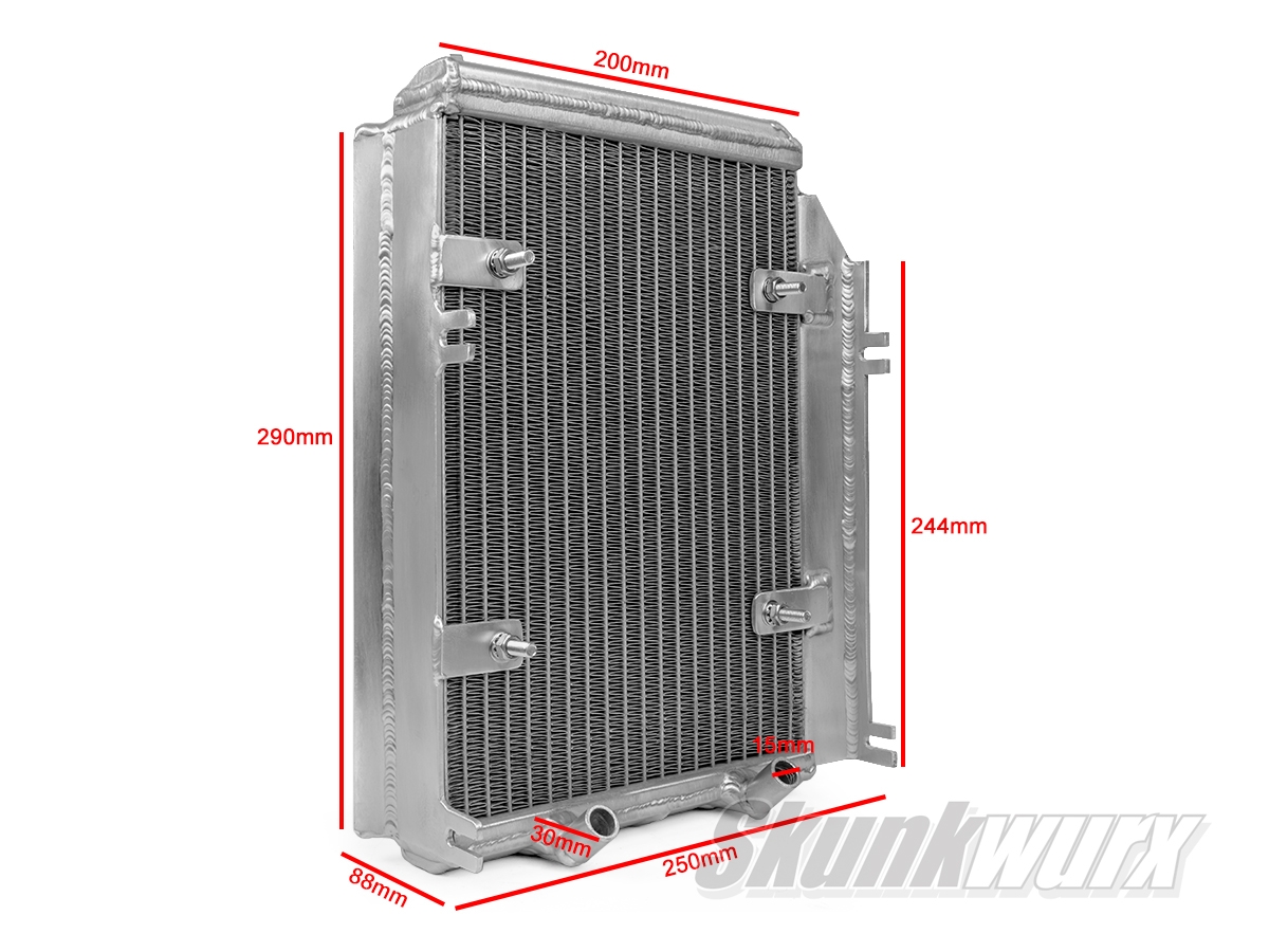 Constructed from high-grade aluminium, this radiator is engineered for optimal performance in track environments and hotter climates. Its lightweight yet robust design provides improved cooling efficiency, helping maintain lower engine temperatures, enhance overall performance, and prolong engine life.