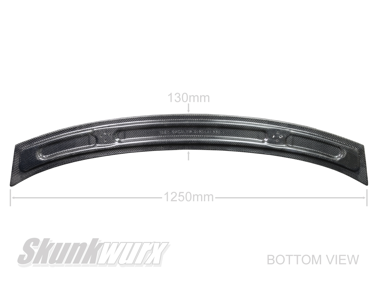The spoiler is made made using the prepreg/autoclave method which involves in curing the part in an autoclave oven at high temperatures, which gives carbon fiber its strength. It is not made using the wet-layup process which is used for purely cosmetic purposes and has no strength.