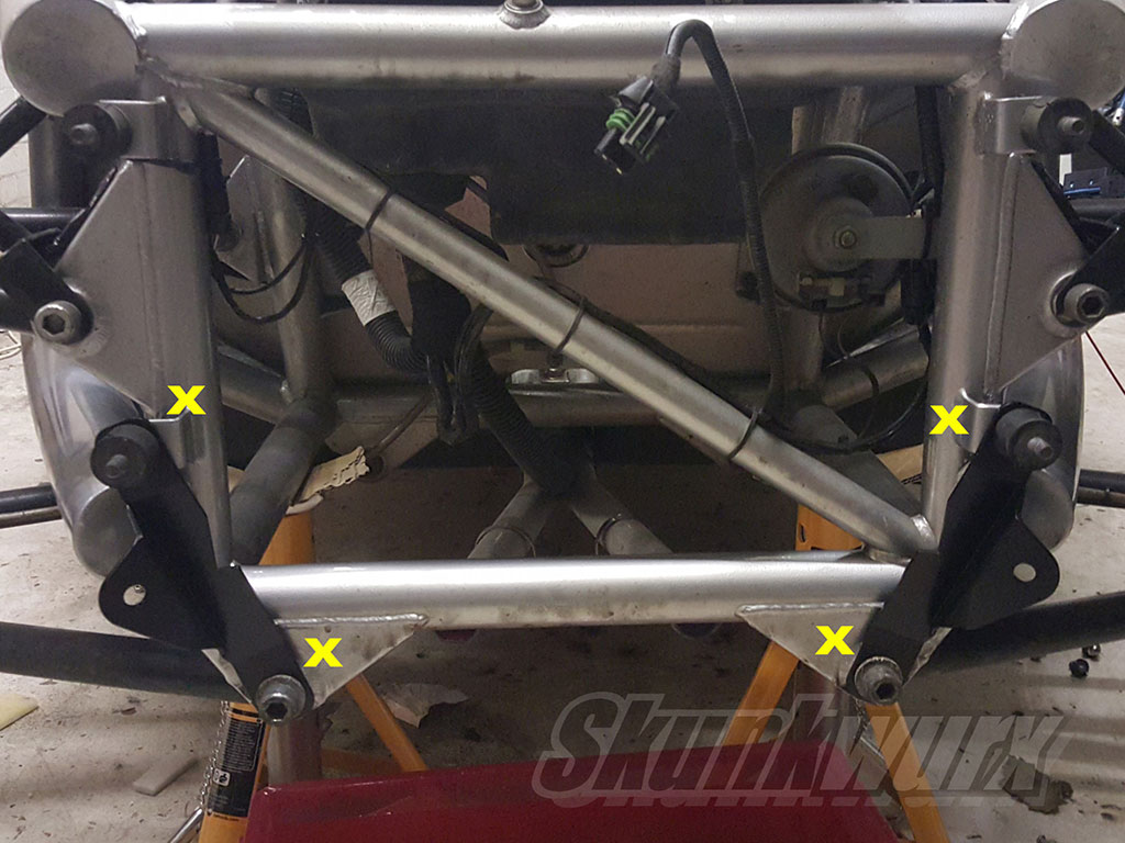 The two butterfly brackets supplied with the kit now need to be fitted to provide a mounting surface for the lower arms of the main bracket.