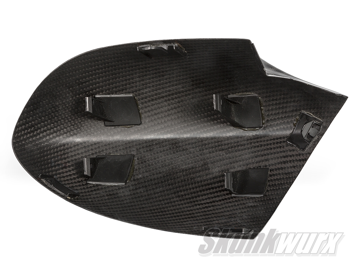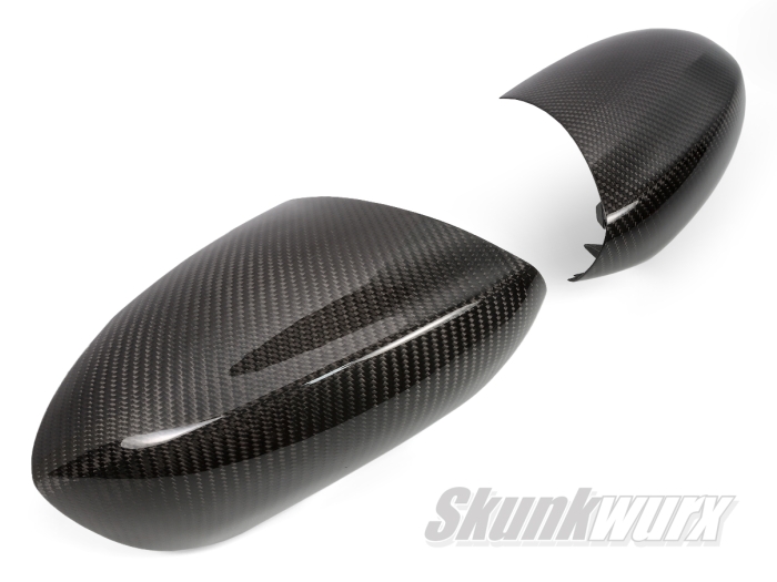 The mirror covers are made of multiple layers of Toray T300 Carbon Fiber with a 3K twill weave and cured with an epoxy resin and finished with a high gloss UV-resistant topcoat, using the pre-preg/autoclave method to give an ultra-lightweight product with superior strength and resilience. The T300 carbon material by Toray is the baseline carbon fiber used in automotive and aerospace applications. It has a 30 year production history and is known for its balanced composite properties, high quality, consistency, and reliability.