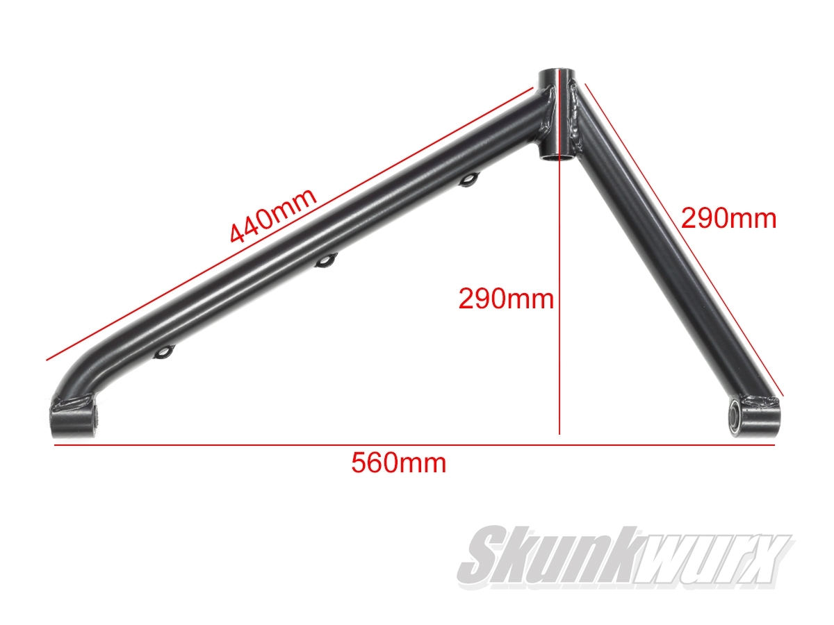 Uprated rear lower left/right wishbone for the Ariel Atom. These wishbones are made of superior seamless tubing (original factory ones are welded tubing) to provide a stronger suspension setup.