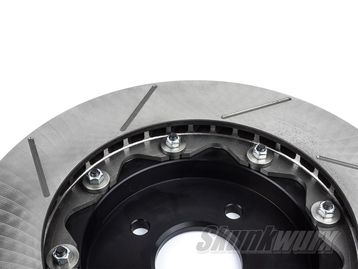 The bells on all Skunkwurx two-part discs are made with hard anodised aluminium which prevents it from rusting or fading from heat/light. The rotors are interchangeable. So a fully-floating disc may at a later date be converted in to a fixed two-part disc or vice versa.