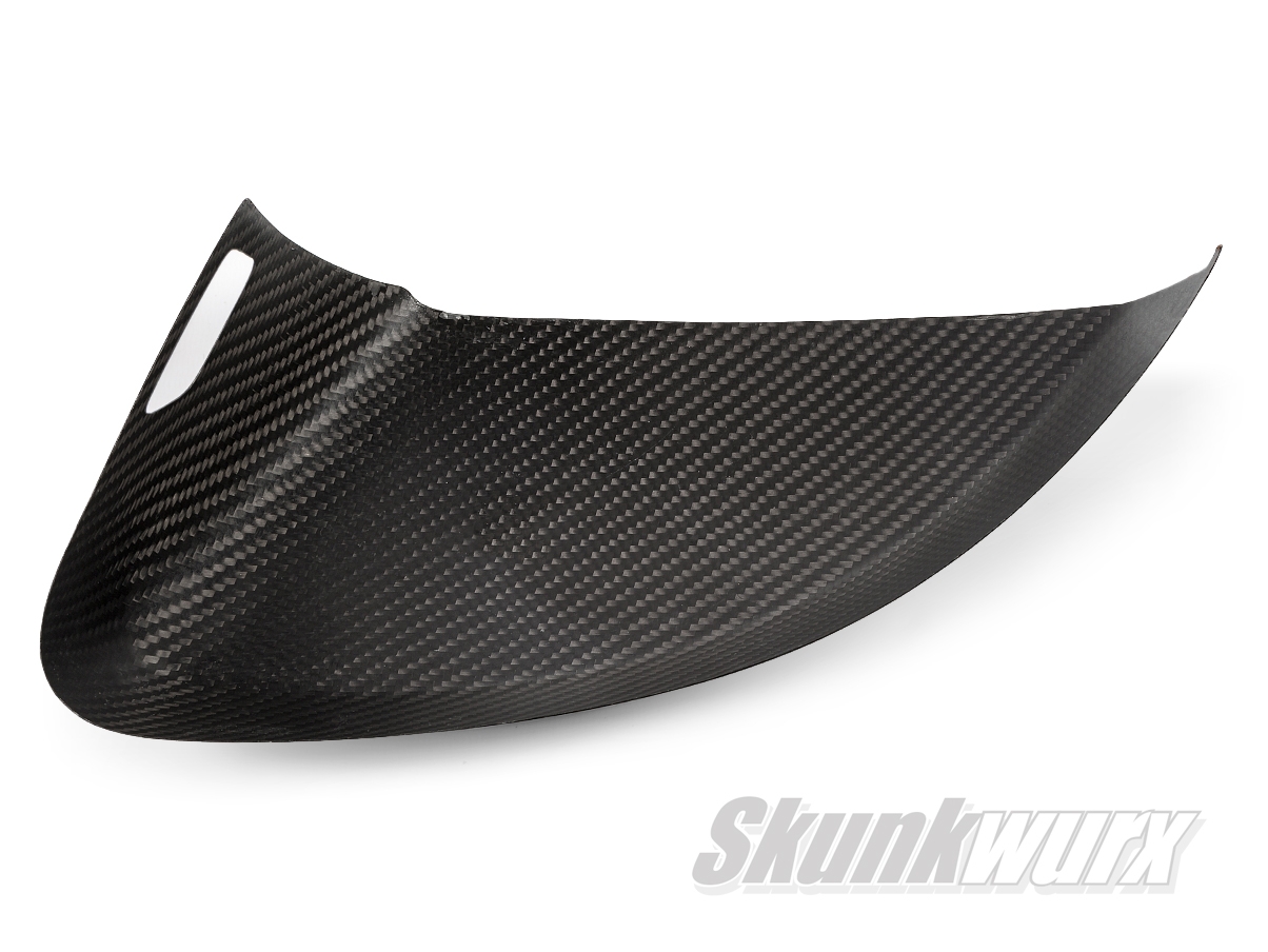 Made of Toray T300 Carbon Fiber with a 3K twill weave and cured with an epoxy resin and finished with a high gloss UV-resistant topcoat. The T300 carbon material by Toray is the baseline carbon fiber used in automotive and aerospace applications. It has a 30 year production history and is known for its balanced composite properties, high quality, consistency, and reliability.